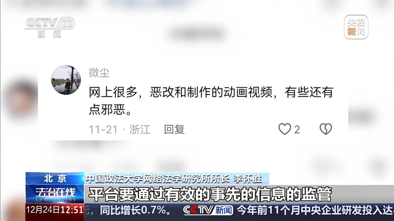 同样令人担心的是,然而,明白所有AI生成的文字、图片、视频等内容都要“亮明身份”,这些操纵AI生成的动画视频为何能正在短视频平台上普遍?我们的法令对于的内容能否有相关呢?收集平台又该若何履行监管义务呢?