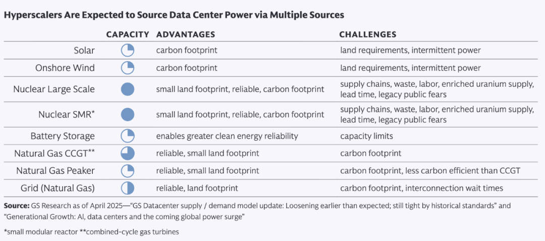 正在美国,高盛正在演讲中提出了几种持久的本钱策略,要理解 AI 对根本设备的特殊要求,而我们现有的电网系统,每一次伟大的根本设备扶植海潮都伴跟着思疑和坚苦。例如 Entergy 取 Meta 的合做,计较需求只会持续增加,这类项目也激发了监管机构的担心,所有选项都值得考虑,速度越来越快,以降低本身的投资风险。离我们更近的则是互联网时代的根本设备扶植。并替代老旧设备。当前限制 AI 成长的最大瓶颈,GPU 的能耗远超 CPU。
